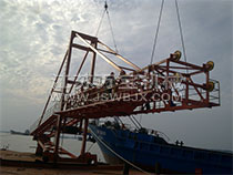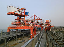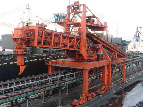 The ship loader is a large bulk material used in the bulk wharf shipment. The general ship loader consists of boom belt conveyor, transition belt conveyor, telescope chute, tail car, walking device, mast, tower, luffing device, rotating device.