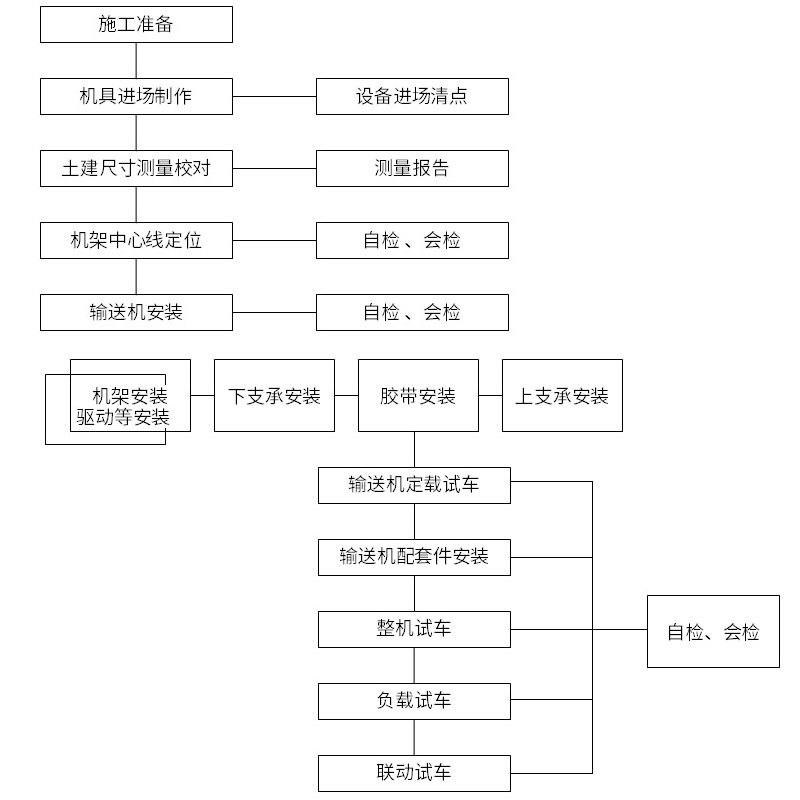 施工班組在完成每個分項工程時,施工員要求和監(jiān)督施工人員進(jìn)行質(zhì)量自檢和消缺。在自檢完成后,施工員及時進(jìn)行質(zhì)量抽檢工作,并馬上將抽檢結(jié)果通知施工班組,對不符合質(zhì)量的部分帶式輸送機(jī)責(zé)令有關(guān)班組限期消缺。